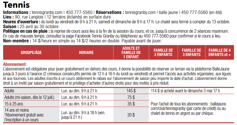 - La Carte-loisirs de la Ville de Granby est obligatoire pour devenir membre.